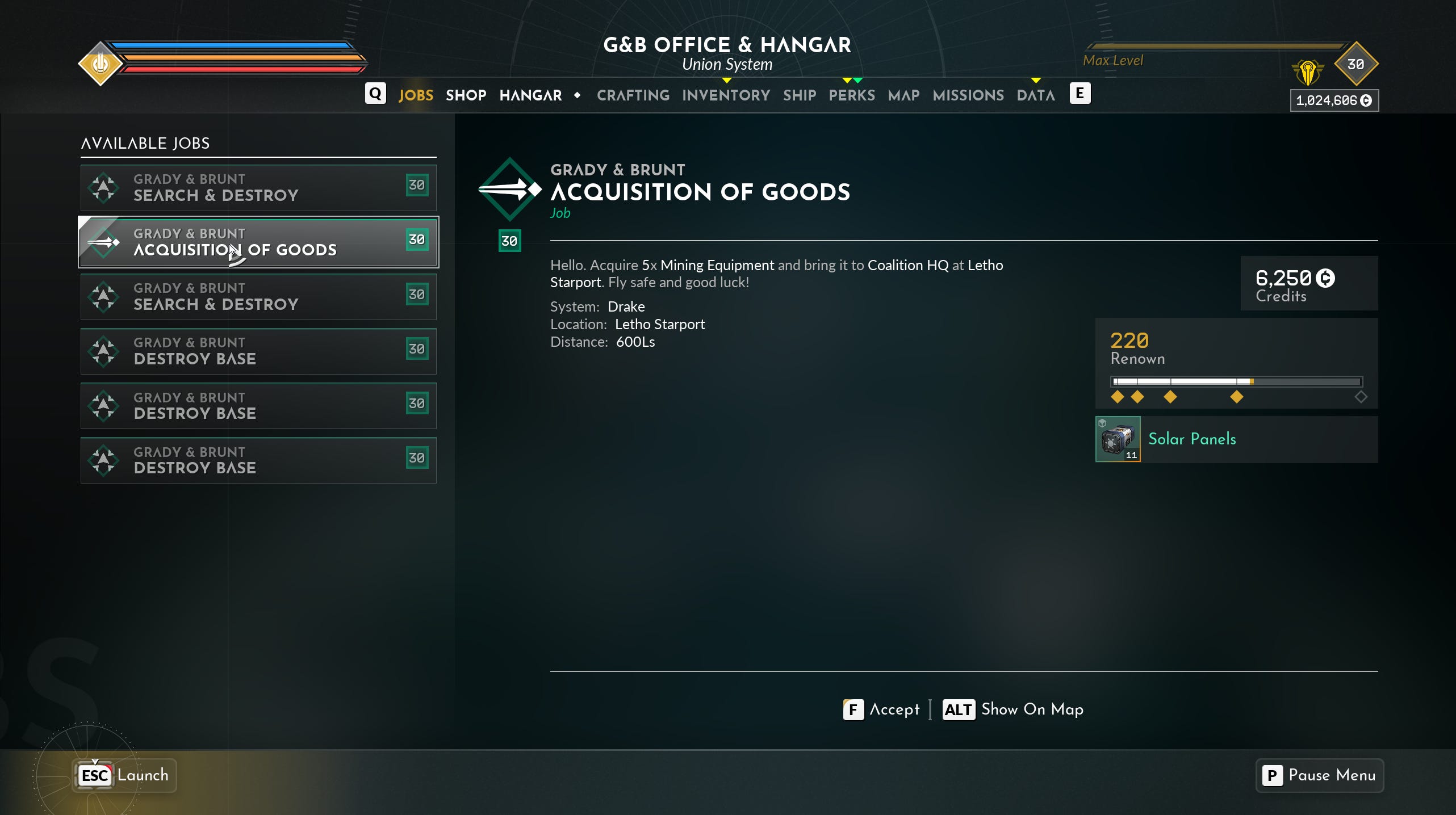 For example, here’s a screenshot of the job board from the space game known as Everspace 2: