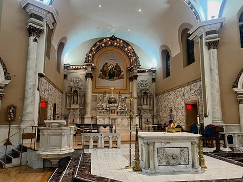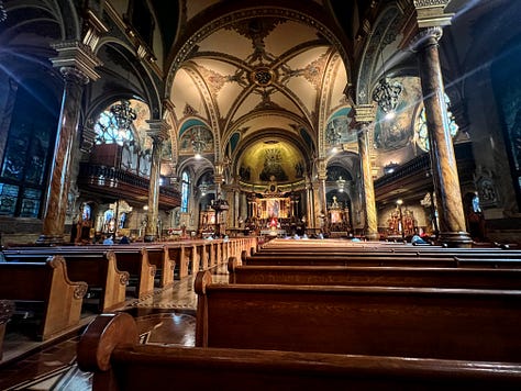 The parish — originally called Notre Dame de Chicago — was built in the late 1800s, and is one of the oldest in the diocese. It started out as a church for French immigrants, but as their population waned, it was later given to the Fathers of the Blessed Sacrament in 1918. I get a private tour, and the interior is beautiful. That said, it’s certainly showing its age.