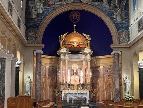 The rain has finally cleared up, and I see the first sunny skies since I’ve arrived. We spend the next four hours or so going from one church to the next. It’s kind of a whirlwind tour, but I’m perfectly fine with that. More than anything, I’m impressed at the amount of beauty that still remains in this diocese. I know Chicago is an old city with deep Catholic roots, but still, I’ve never lived anywhere with so many examples of excellent sacred architecture.