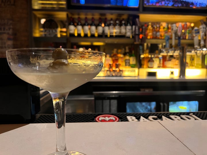 I stopped on my way in, and ate a pizza sitting at a lonely bar. I had a poorly made gin martini before switching to diet Pepsi. My attempts at friendly conversation with the man sitting next to me ran aground against some invisible wall. The ebony-skinned, petite female bartender leaned back against the bar, absorbed in and staring through clear-rimmed glasses at whatever she was scrolling through on her phone. I knew the food was good, objectively, but it didn’t matter. The right flavors were there, but all of it tasted to me like so much ambivalence.