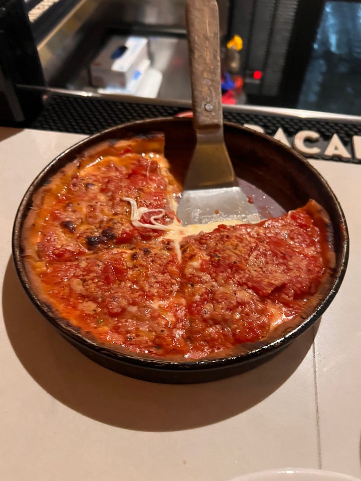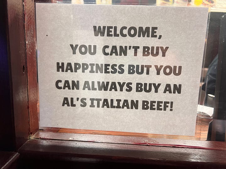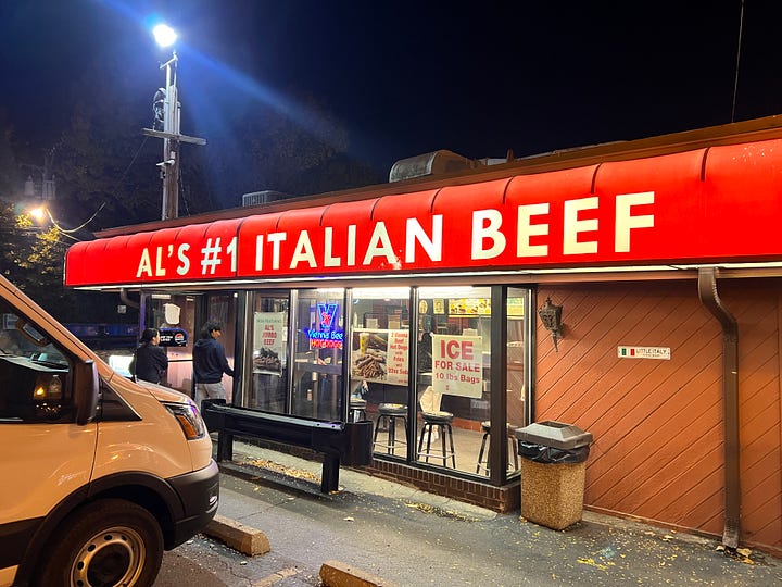 I did venture out a couple more times. I got a weird cabbage pancake and the best gluten free donut I’ve ever had from an okonomiyaki place called Gaijin. I tried a latte from Intelligentsia, which I’d been hearing about since I first got into third wave coffee nearly 20 years ago. I pulled up to the shore of Lake Michigan. At the recommendation of a reader, I tried Al’s Italian Beef. Like too many things these days, it was overpriced and underwhelming.