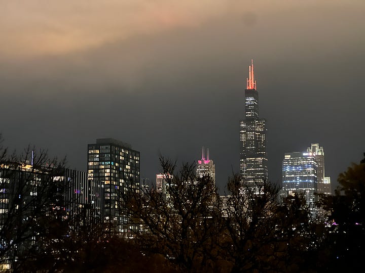 After Halloween, the days in Chicago all kind of jumble together. Holed up in some retired priest’s unused office, surrounded by his abandoned books and decor, writing and editing, cooking food from the local grocery store to avoid the expense of eating out, spending 23 out of every 24 hours alone. It’s all just a big blur.