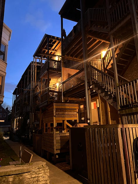 My first visit to Chicago had been about sights and sounds and tastes and experiences and discoveries. I’d spent more time going out than staying in. On this visit, all of that was flipped. I knew the drill. The room on the third floor where I would try to sleep, the borrowed office down the hall where I would struggle to write, the keys to the kitchen where I would cook and eat without satisfaction, the immediate local scene in a city I had fallen in love with but suddenly lost interest in, every day shoving me a little closer to inevitability.