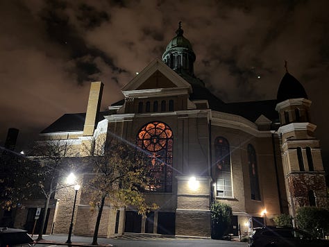 Familiarity is a funny thing. It can grow quickly in the corners and cracks of a new place like an aggressive fungus, given the right conditions and just a little time. Before October, I’d never spent more than a few minutes in Chicago, just passing through. But now the skyline looked like something from my memories, and ideas about where to grab a bite to eat didn’t require a Google search. I knew the name and some of the history of the parish where I’d be staying again — things I hadn’t known the first time — so it didn’t matter that I had accidentally erased all the previous addresses from the history in my phone. I knew which entrance, which parking lot to use, which key fit which lock in which door. A mental map now filled a space that had stood empty in my mind just a couple weeks before.
