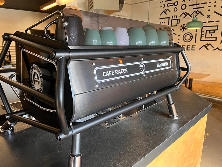 “Really?” I said, both surprised and interested. “I’ve seen Synessos and La Marzoccos, but never a Cafe Racer.”