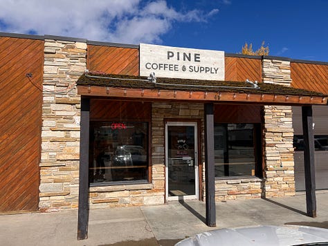 On the road from Rexburg to Rock Springs the previous day, I’d stopped at a beautiful little coffee shop in a town called Pinedale — an isolated outpost in a long stretch of nothing in Wyoming. It was called Pine Coffee Supply, and it had the kind of well-designed, intentionally rustic sign that signaled that the people who ran the place had good attention to detail — almost always a solid indicator when it comes to the particular rubrics of a good cup of coffee.