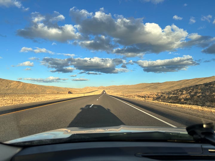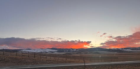 At a rest stop somewhere between Elk Mountain and Arlington, I hoped to get out the drone to grab some footage of the sun setting behind a snow-capped peak, but there was no chance I could fly the little guy in the gale-force winds. I had to settle for some point-and-clicks from my phone.