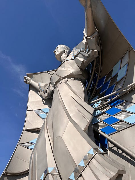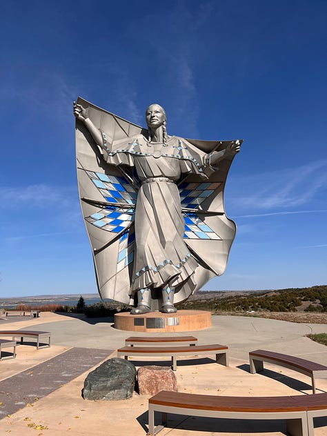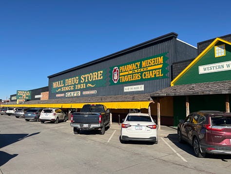 I make a stop at a rest area with a statue I immediately think of as “Sacagawea Voltron.” Thing is 50 feet tall, 12.5 tons, and looks like it could be deployed to fight a Kaiju. A couple hours later, I make an obligatory stop at Wall Drug, but it doesn’t hit the same without my kids there.