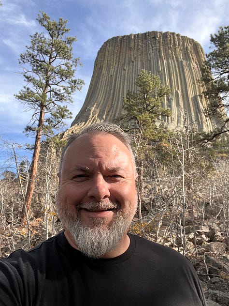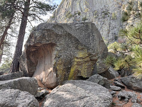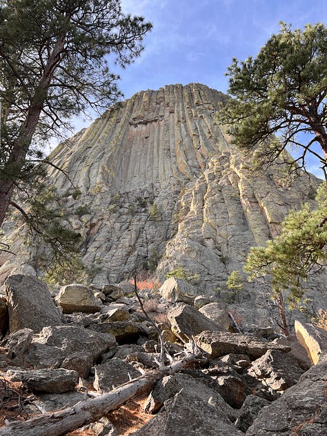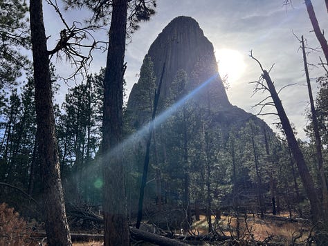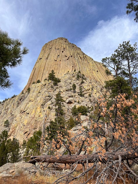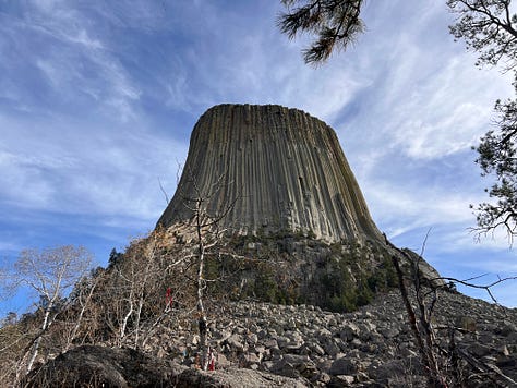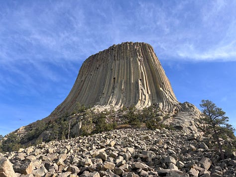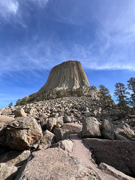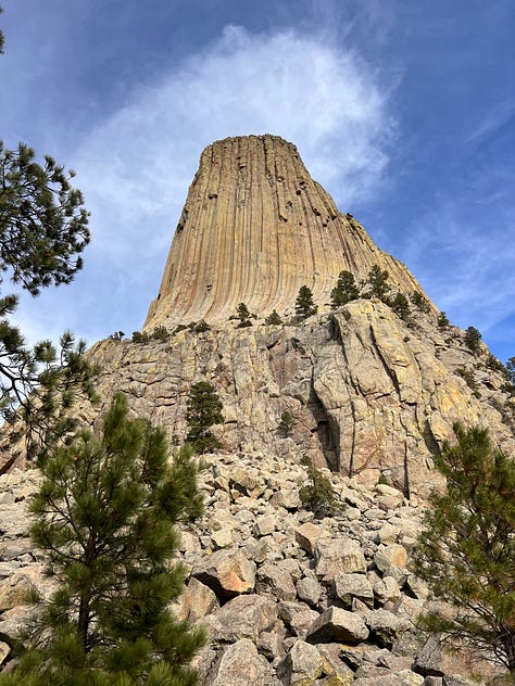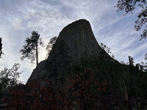 I see a sign for Devil’s Tower National Monument — a place I’d forgotten wanting to visit — so I fire up a weird UFO podcast and take the exit, knowing this means I probably won’t be seeing the Tetons until at least tomorrow.