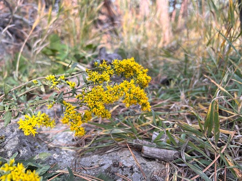 In the last few hundred yards of trail, my feet are hot and sweaty and starting to get sore from rubbing against the rough lining of the old, beat up sneakers I’m wearing. I decide to take them off. I want to be grounded, energetically connected to this place before I leave. I step off the paved trail onto the thick carpet of pine needles, feeling the cool, soothing ground beneath my naked feet.