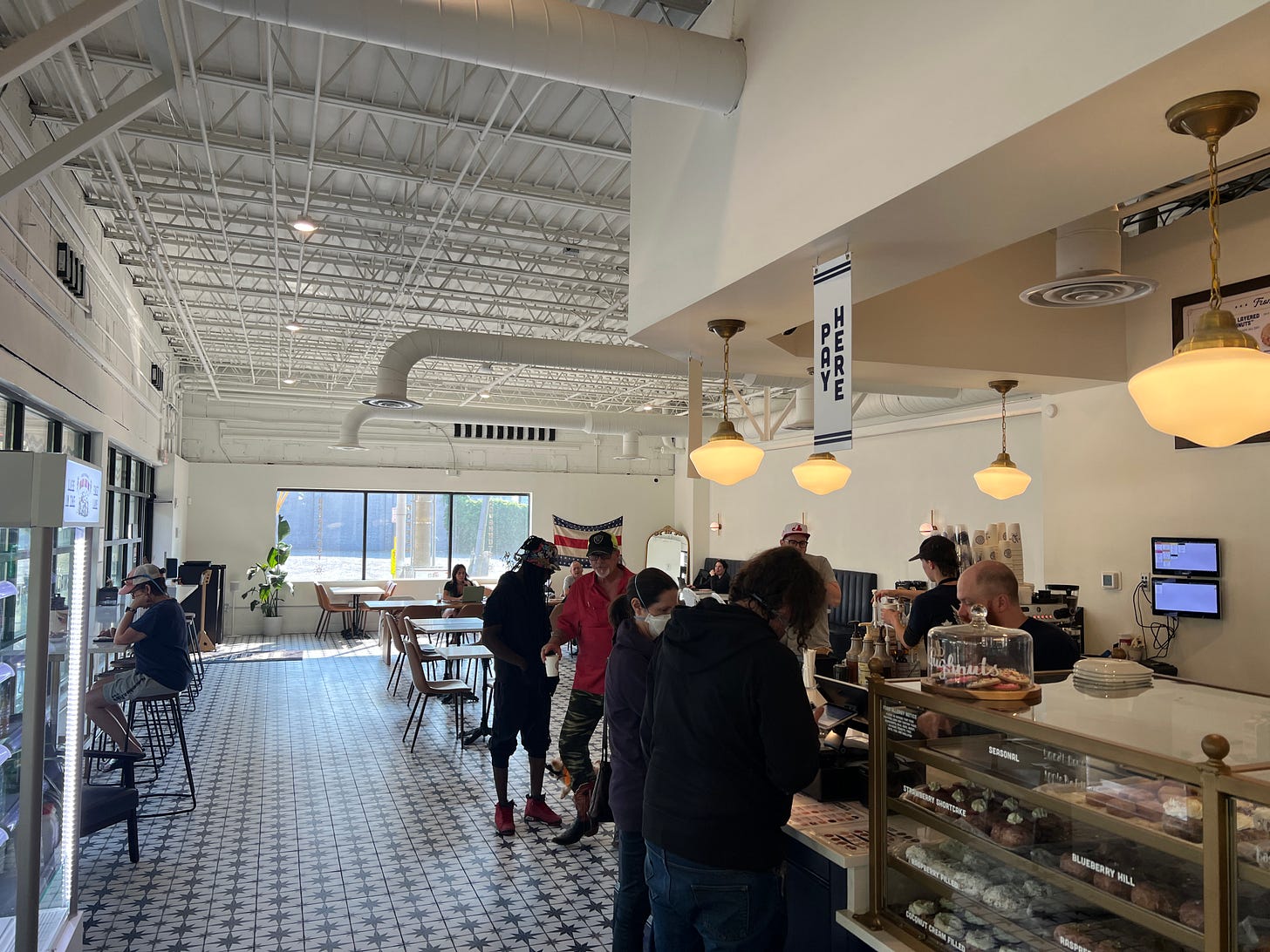 At a bougie donut shop downtown, decked out in a neo-retro industrial style I don’t quite know how to describe, I order a quad shot iced latte and a monstrous donut for Eli, our precocious but highly particular 4 year old. I grab a gluten-free cake donut for myself.