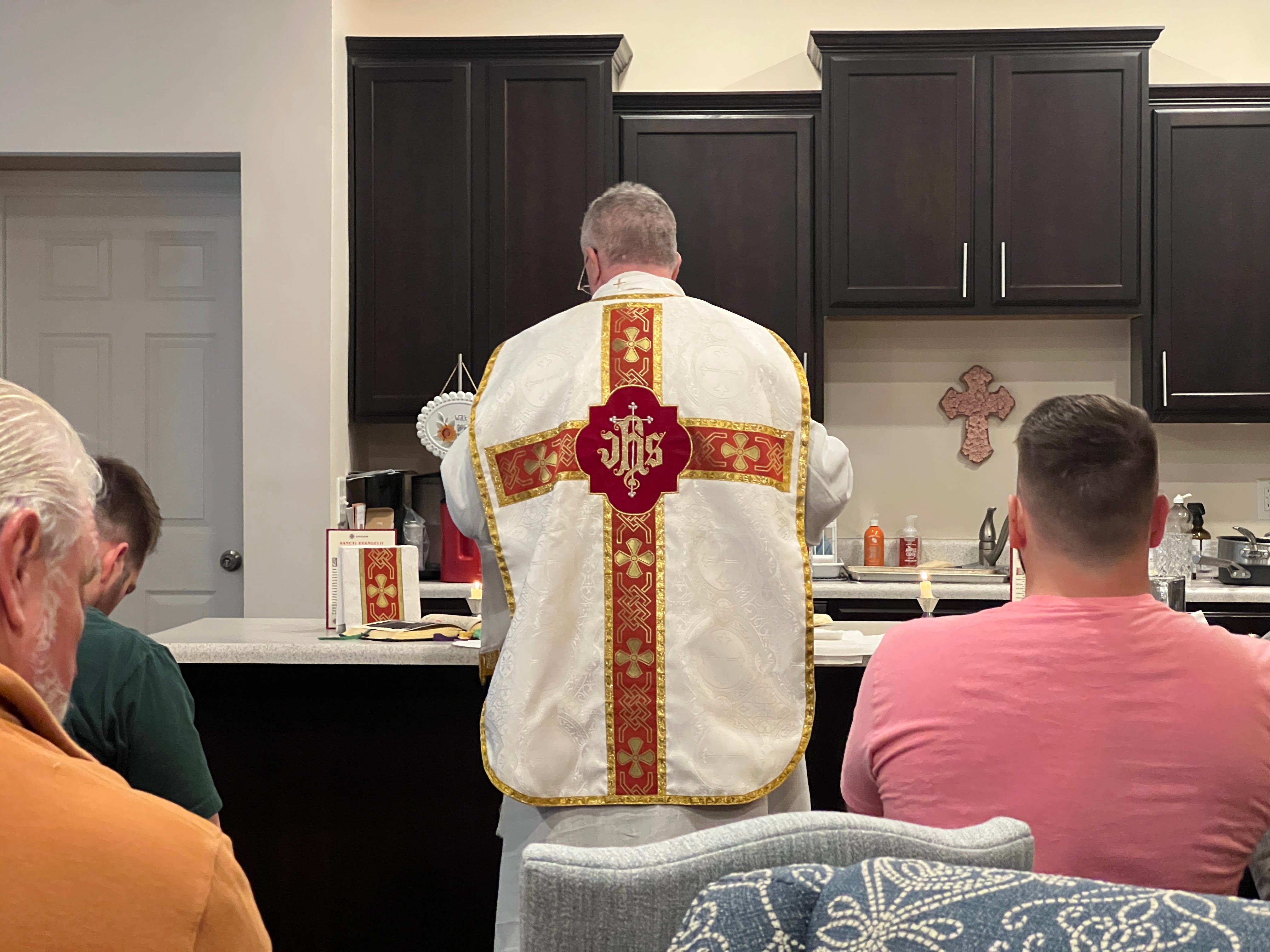 But after the range, it was back to the house, where another cousin of mine, a traditionalist Catholic priest, offered a Traditional Latin Mass in Jimmy’s kitchen.