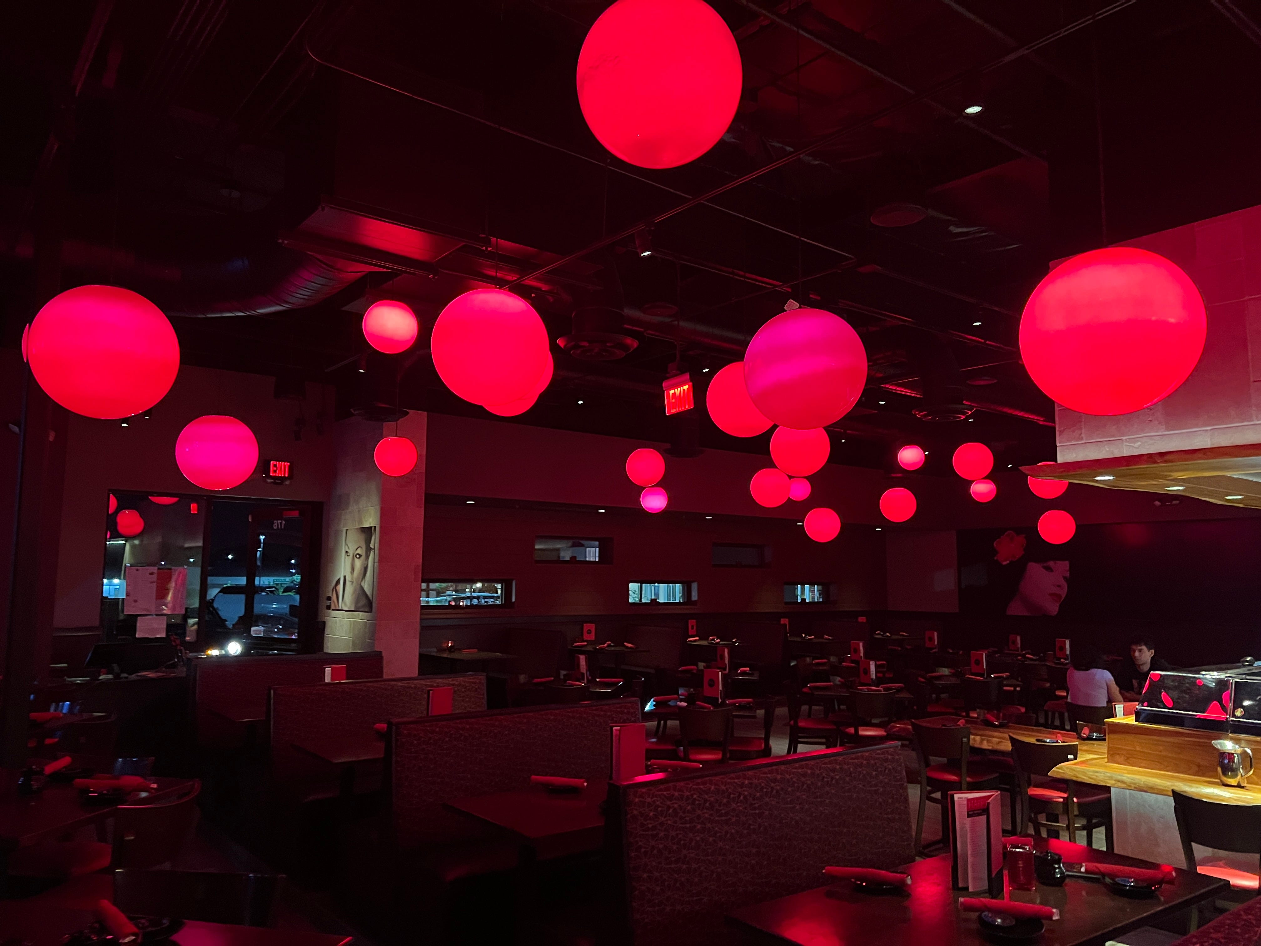 A late-night sushi order takes me inside a chiaroscuro space at a place called Ra, deep shadows yielding to pools of soft, warm light, all colored by a constellation of red paper lanterns overhead. Even mostly empty, the whole place is a vibe, and I soak up the ambience while I wait for a young waitress who looks Japanese but sounds completely American to grab my order from the kitchen.