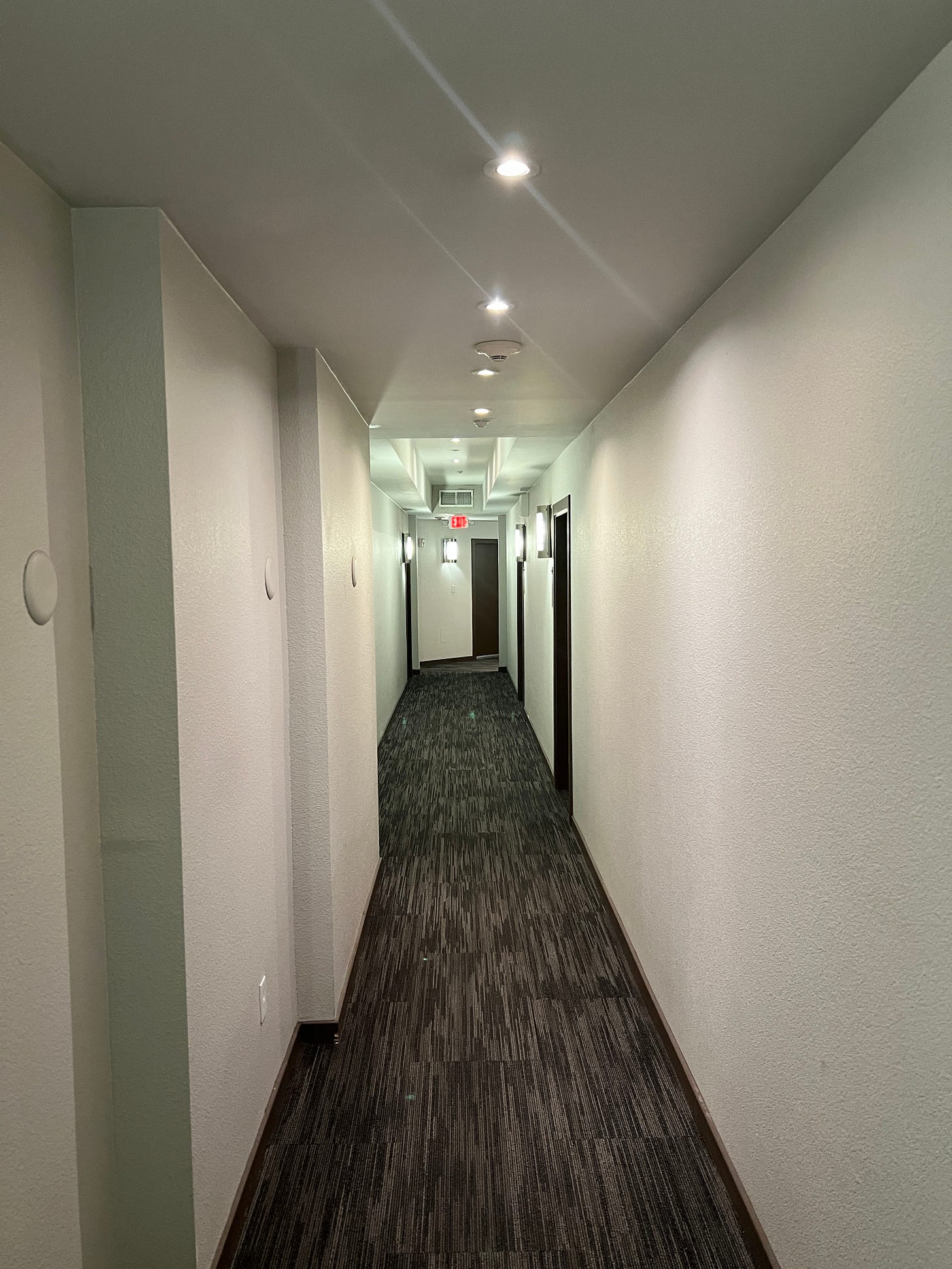 The whole place makes me vaguely uneasy. “It’s a beige place,” I catch myself saying out loud, just past the mailboxes, and I realize as I say it that it’s not so much because of the muted brown paint, but because the whole ambiance is that of a kind of institutionalized mediocrity. If there is nothing egregious about it, there’s nothing exceptional either. It’s all entirely forgettable; a liminal space of the sort where excitement and ambition go to die.