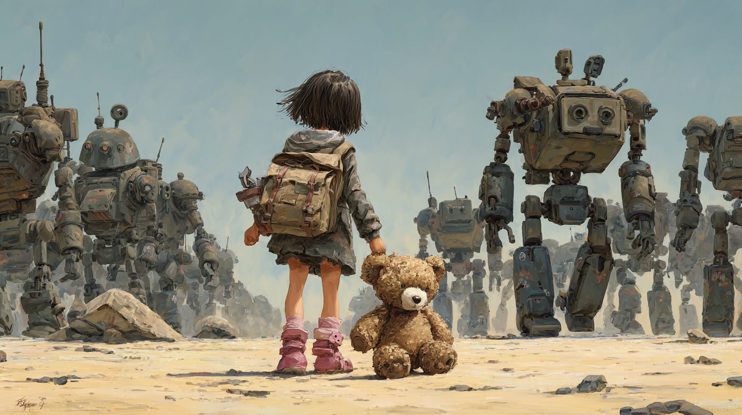 Maybe I’m fooling myself. Maybe I’ll hate it, this Robotopia. I’m just tired of feeling like I’m always punching surf. It would be cool to write and paint and sculpt and travel and podcast with my friends, figuring out mysteries like we’re all in the Bloodhound Gang together (even though Mister Bloodhound is never here), with all the time and freedom and none of the pressure of feeling like the rent depends on it. Maybe AI will leave some of the mysteries of the universe to us to solve, like brightly-colored plastic shape puzzles left for mentally-challenged children to bang about, if we could just stop putting the pieces in our mouths.