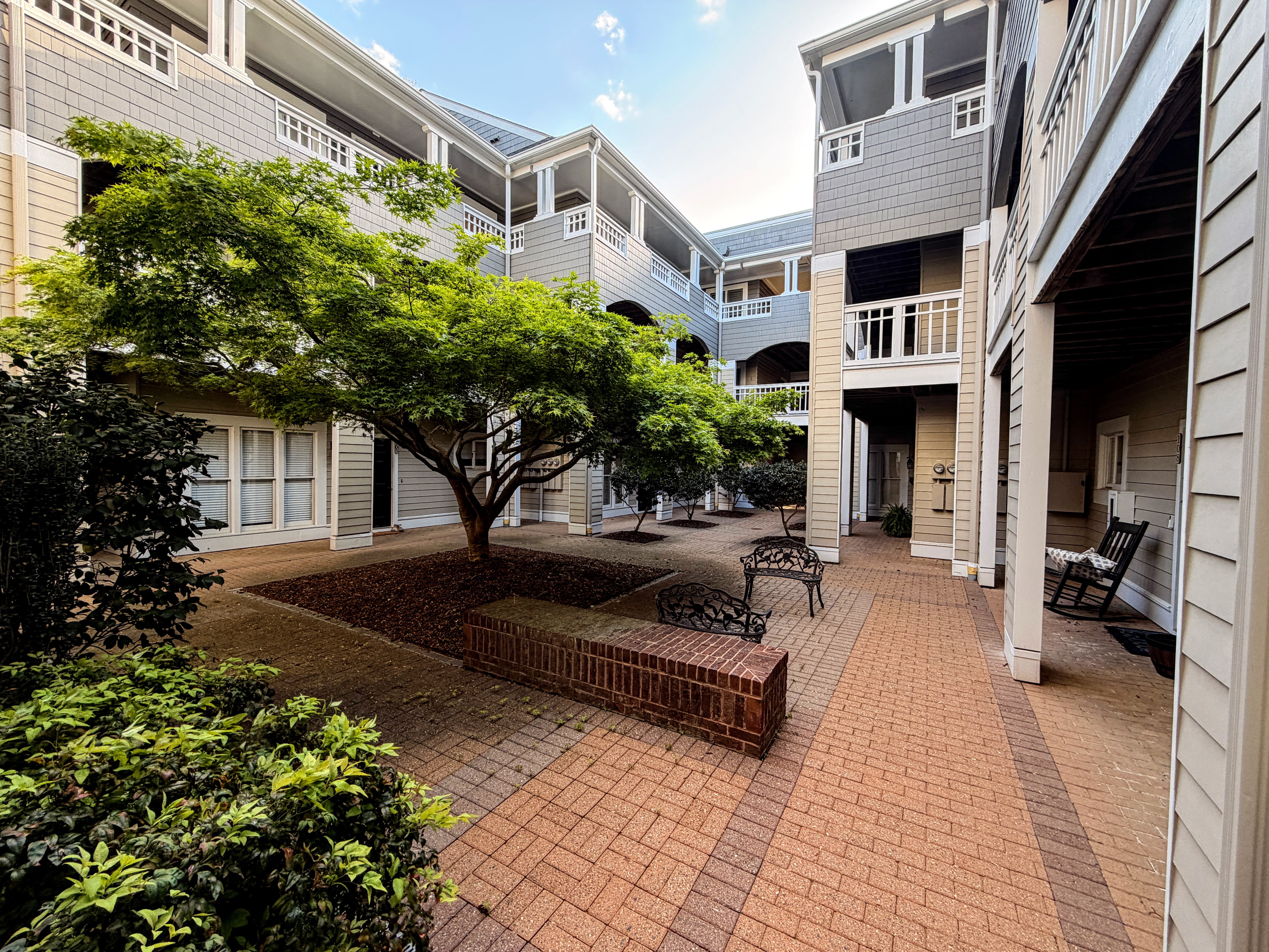 At an apartment complex called Brighthurst, I leave the pizza on an ornate concrete bench just inside an alcove tucked away from a peaceful courtyard with well-manicured trees and shrubs that feels almost like a Zen garden.