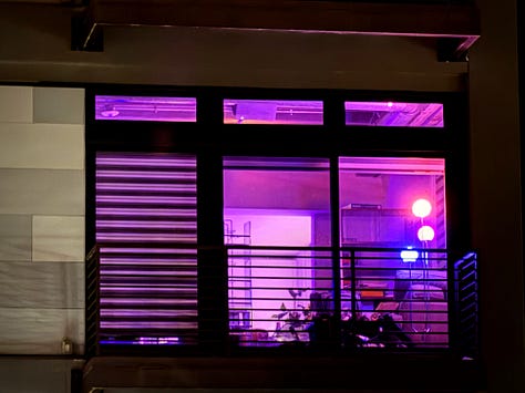 The sights start to blur together at this point in the night. The cool brick entrance to a bougie bar here. The bright purple glow from an apartment there. A stoplight glowing angrily at an empty intersection as I wait for it to change.