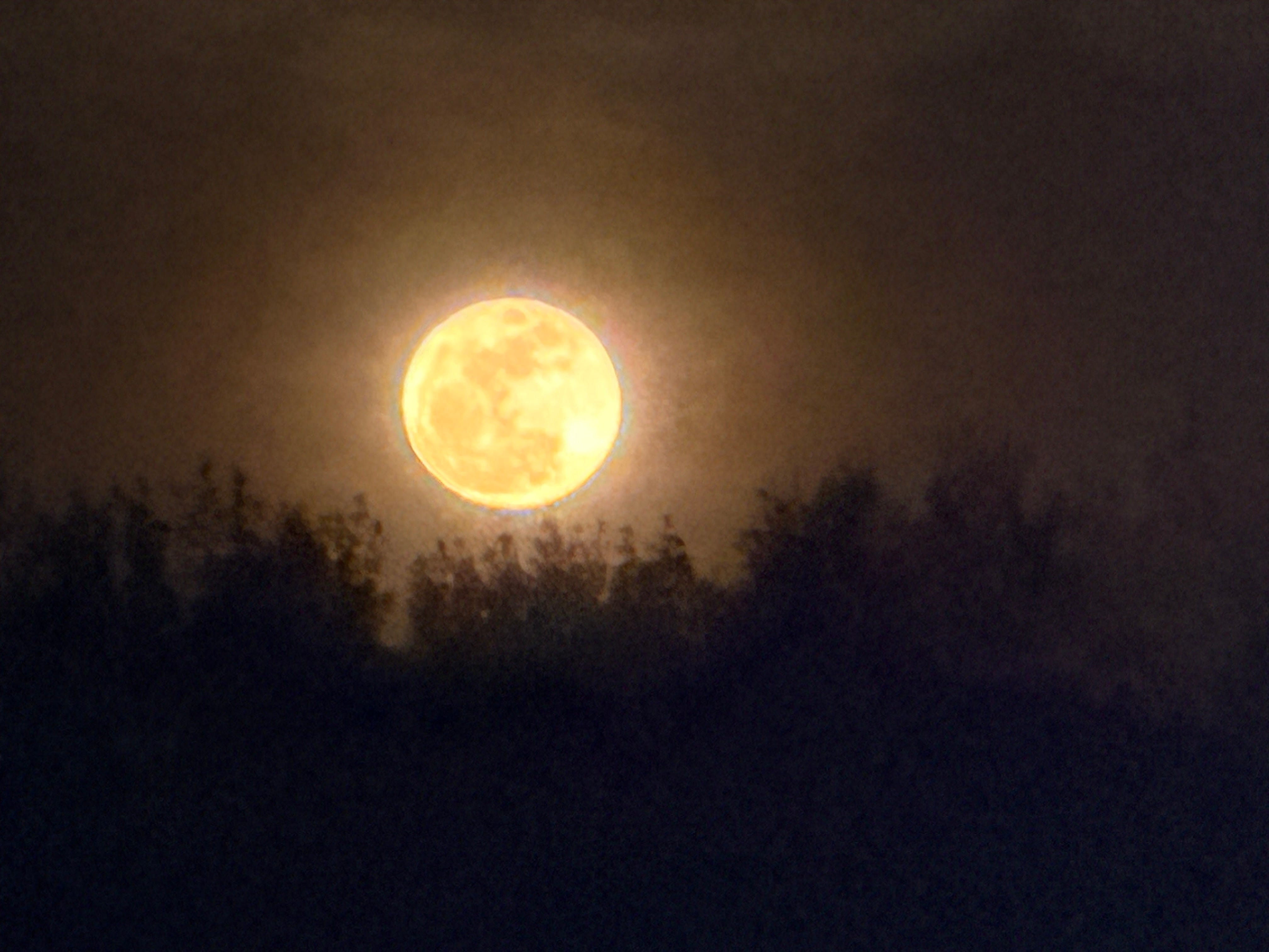Moments later, I stop the car and grab a tentative shot of the unusual moon from the parking lot of a Raising Cane’s chicken shop before it rises too high in the sky. There are too many streetlights. I zoom way too far in and do the best I can.
