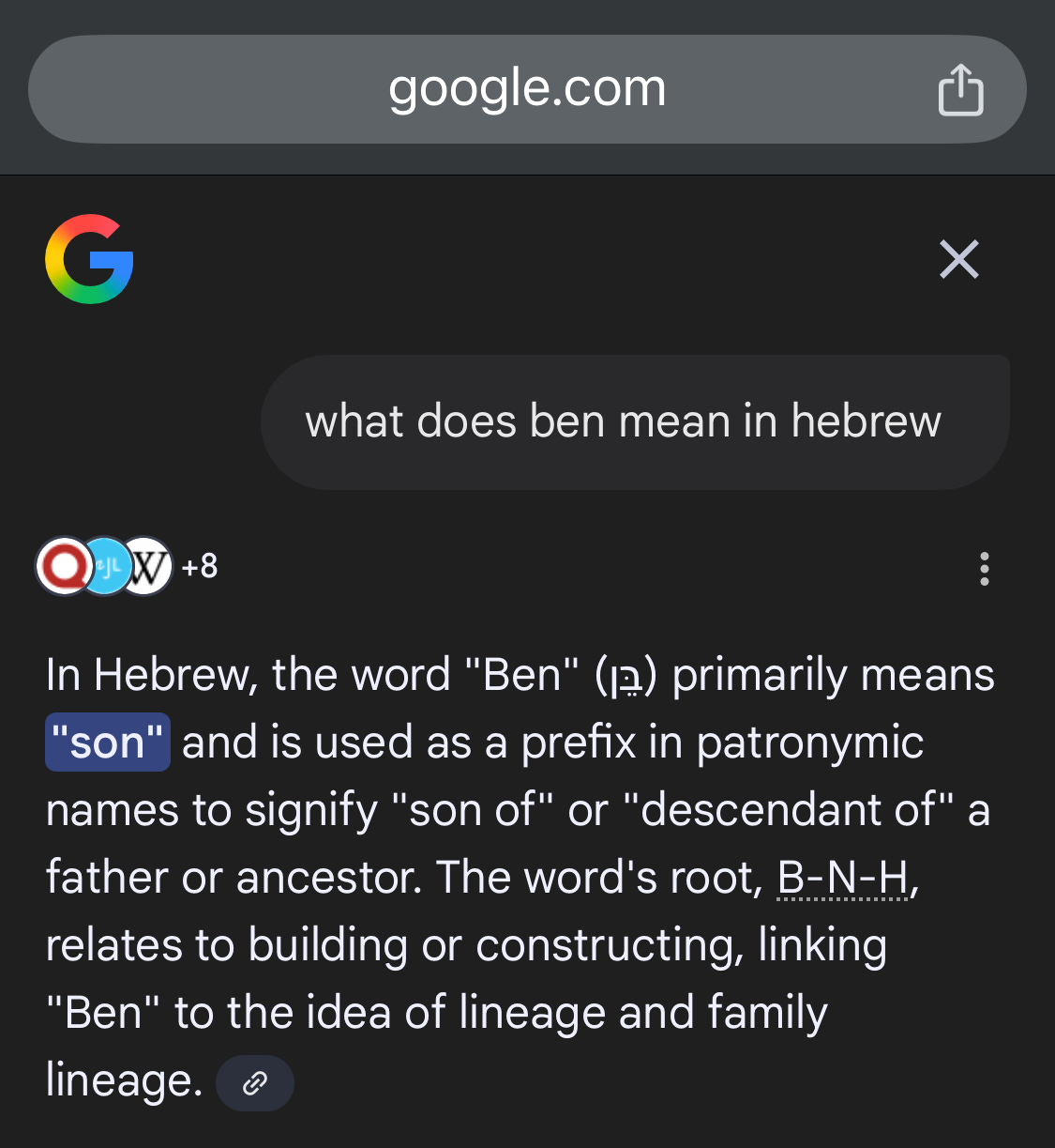 “Ben” can also refer to a broader sense of lineage, including grandsons, disciples, members of a nation, or even inanimate objects that share characteristics with their source, like “sparks” or “stars”.