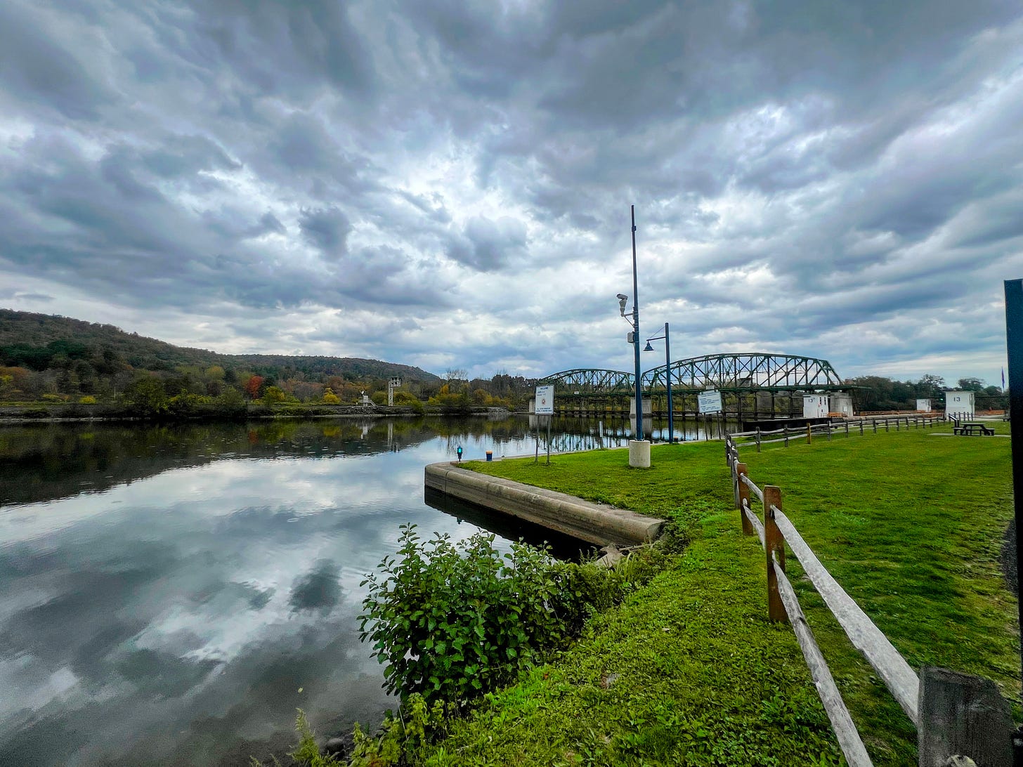 My little mid-sized sedan drives nicely, but it’s cramped quarters for my 6’4” frame. At a rest stop somewhere in the Mohawk Valley, I took a walk to stretch my legs, and the path wound around towards a canal and lock system — still in operation — just fifty yards or so behind the building.