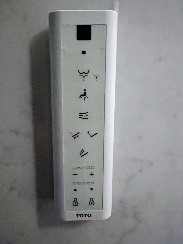 I’m not even going to talk about the ten minute invasive experience that resulted from my inability to figure out how to turn off the bidet using the hieroglyphs on the provided remote. I almost had to call 911.