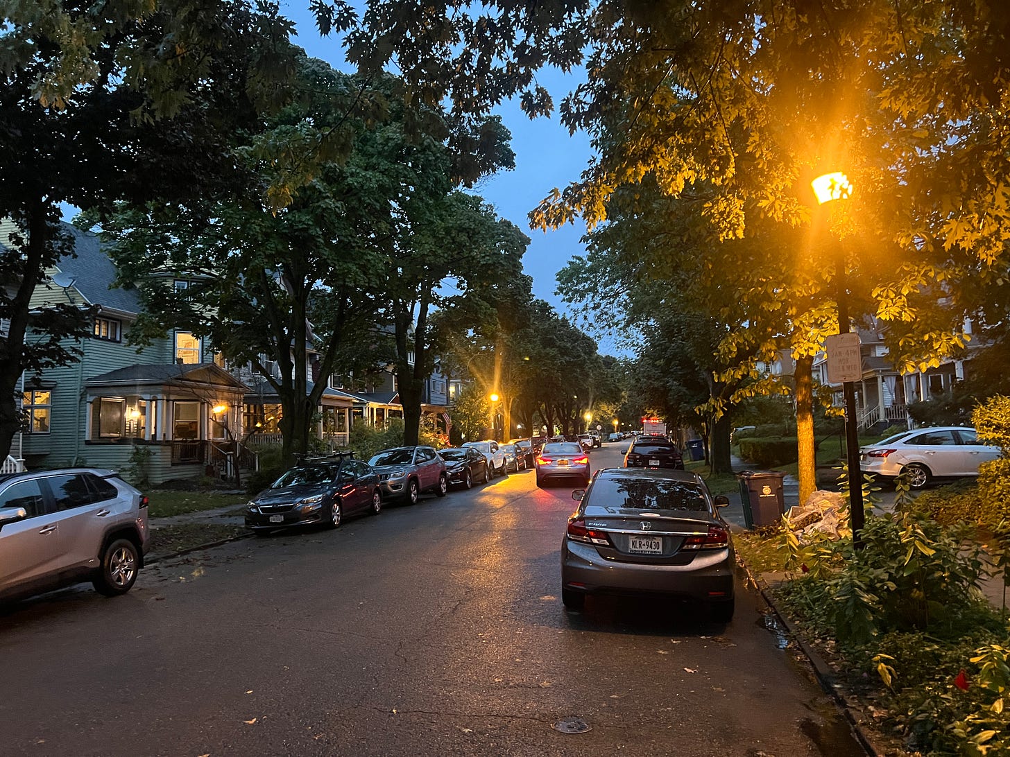 It stood out on a residential street full of early-20th-century American Foursquare and late Queen-Anne-influenced homes; boxy houses with prominent front porches, crowded together, worn by weather and time, surrounded by mature trees, and lit by the soft glow of incandescent street lamps.