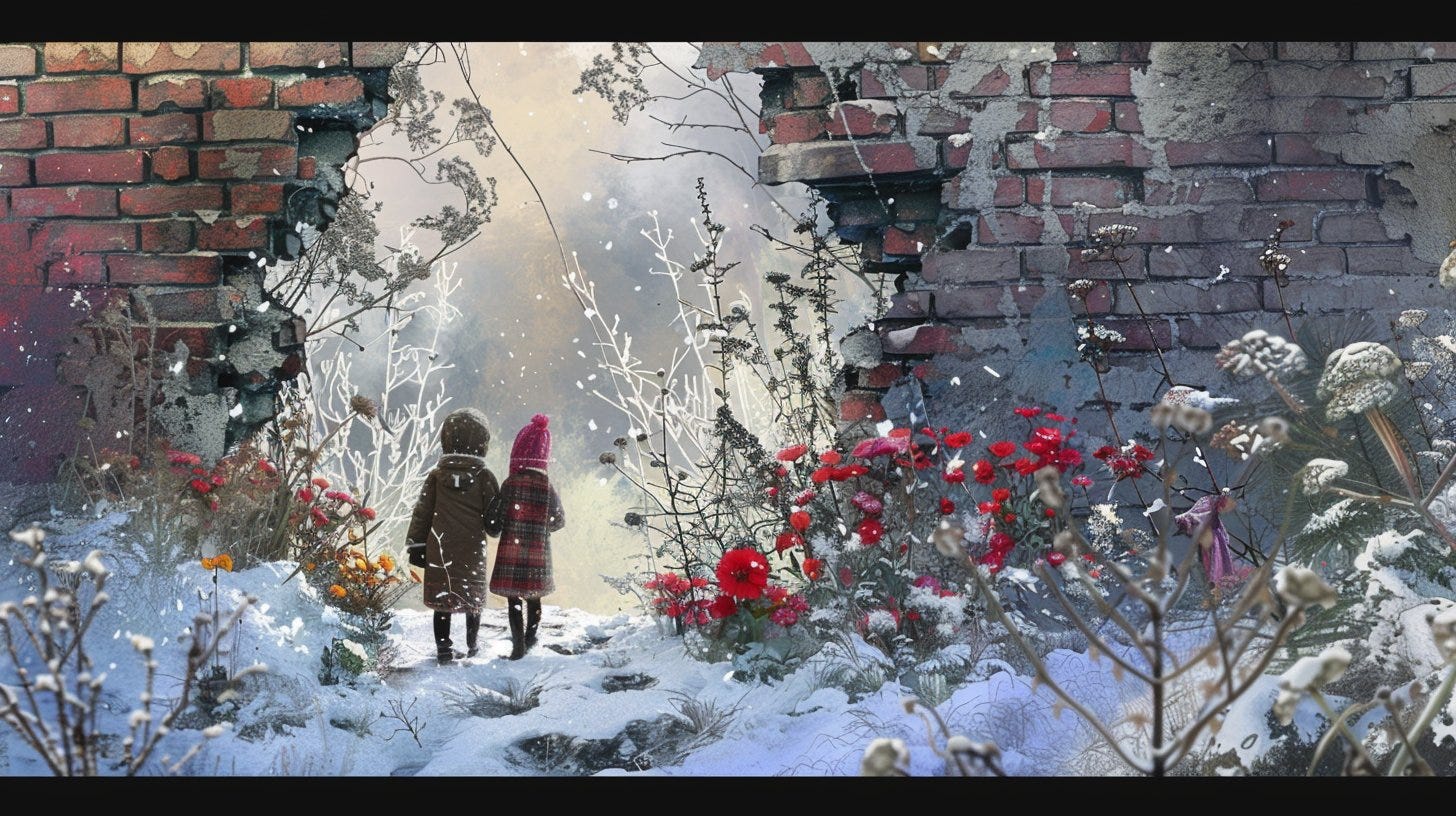 Some children had come through a hole in the garden wall, and wherever they played, Spring burst forth from the wintry garden. Suddenly, the Giant realized how selfish he had been, and resolved to knock down the wall and let the children play there forever.